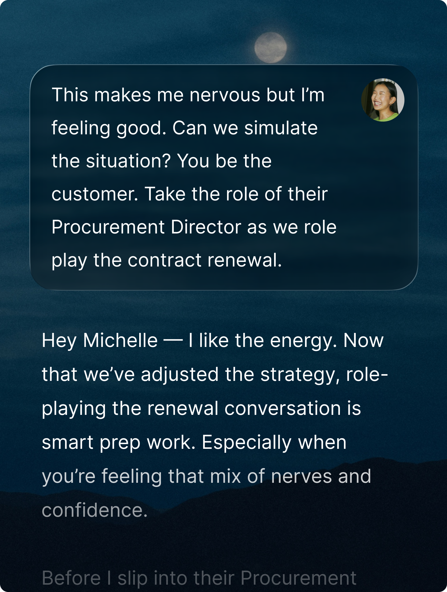 Strategic, tailored coaching refined over two decades of high-stakes enterprise deal-making, available the moment you need it.